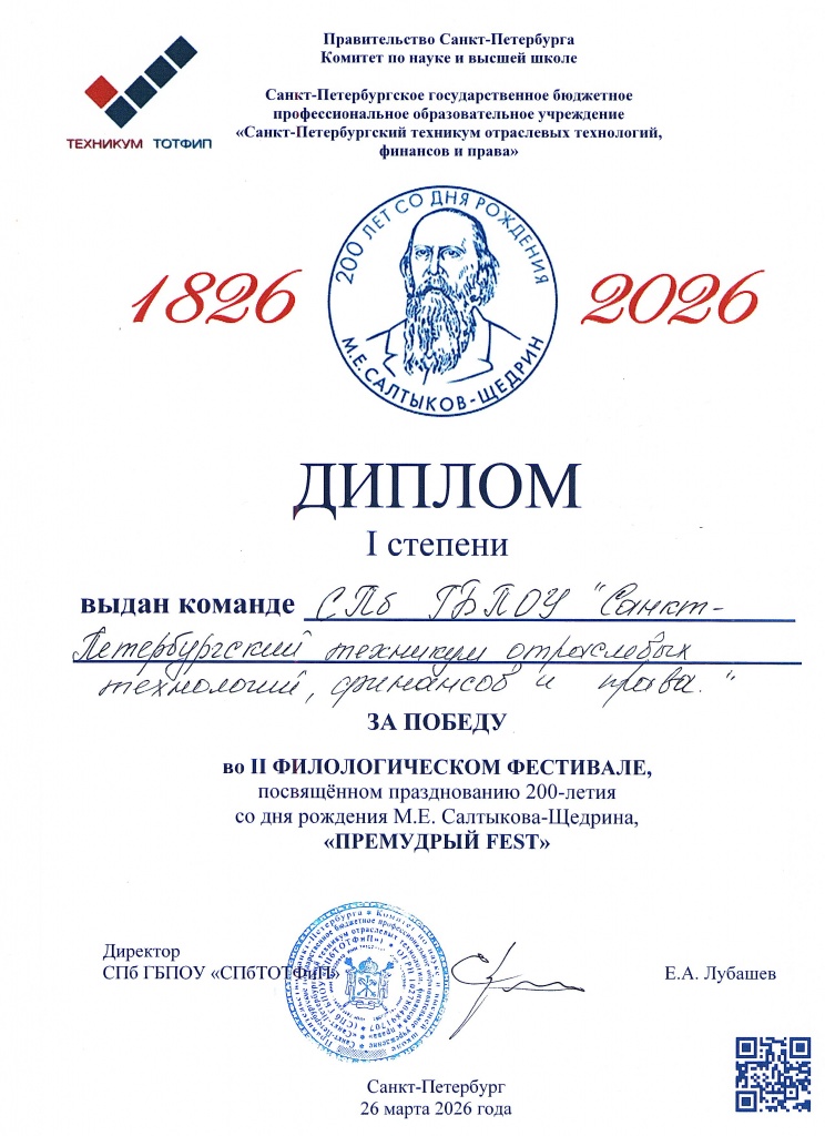 В стенах нашего техникума состоялось яркое событие, объединившее любителей литературы, знатоков русского языка и ценителей творчества великого сатирика. II городской филологический фестиваль «ПРЕМУДРЫЙ FEST» был приурочен к знаменательной дате — 200-летию со дня рождения Михаила Евграфовича Салтыкова-Щедрина.