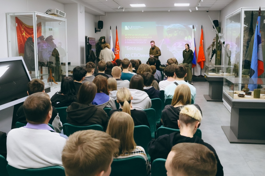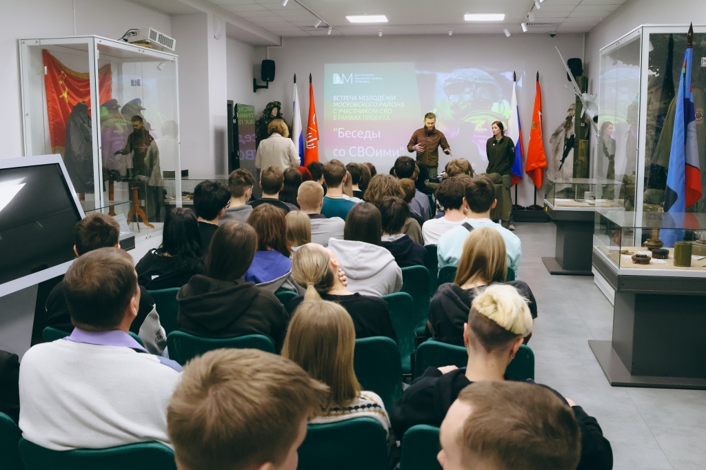 25 марта студенты группы 2-АУ-7 в сопровождении преподавателя Радченко В.Б. приняли участие во встрече молодежи Московского района с участниками Специальной военной операции, которая проходила в рамках проекта «Беседы со СВОими» в Центре патриотического воспитания СПб ГБУ «Дом молодежи «Пулковец».