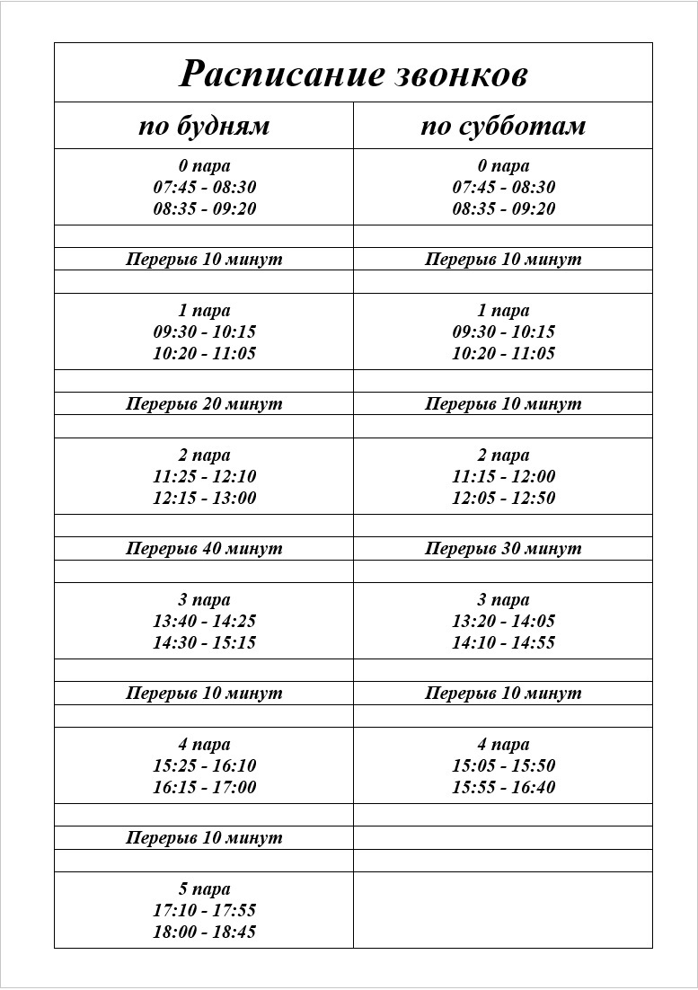 Основное расписание учебных занятий на 2 семестр 2025-2026 учебного года