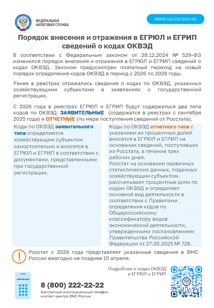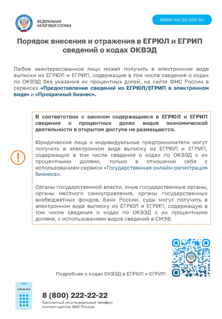Порядок внесения и отражения в ЕГРЮЛ и ЕГРИП сведений о кодах ОКВЭД